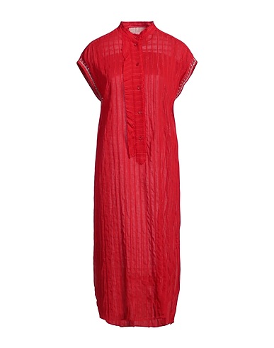 shirt dress, woven, jacquard, metallic, solid color with appliqués, embroidered, ruffles, mandarin collar, short sleeves, unlined, button fastenings, without pockets, side slit hemline, hand wash or dry clean, do not bleach, do not tumble dry
