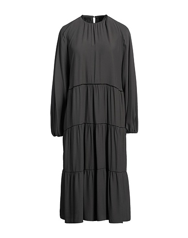 flared dress, crepe, embellished, solid color, crewneck, long sleeves, internal boning, hook fastenings, without pockets, dry clean, do not bleach, do not tumble dry