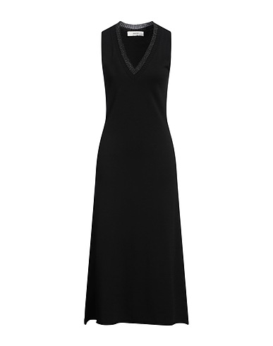 flared dress, knitted, metallic, lightweight knit, solid color, brand logo, v-neck, sleeveless, unlined, hand wash or dry clean, do not bleach, do not tumble dry