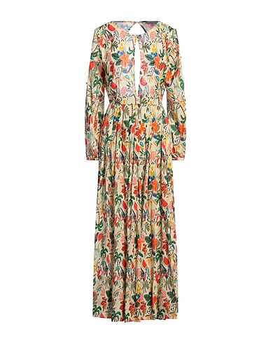 flared dress, woven, hawaiian-print, beads, crewneck, long sleeves, unlined, zipper fastening, button fastenings, without pockets, hand wash, do not tumble dry
