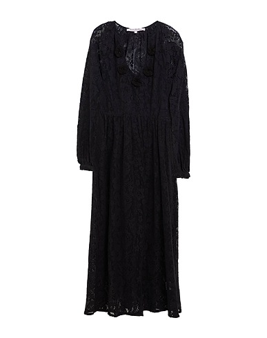 flared dress, lace, solid color with appliqués, floral appliqués, deep neckline, long sleeves, unlined, without pockets, hand wash, do not bleach, tumble dry