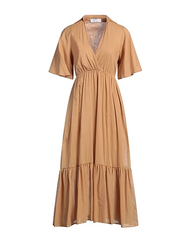 flared dress, woven, solid color, tiered, wrap-effect, classic collar, short sleeves, fully lined, elasticized waist, machine wash or dry clean, do not bleach, do not tumble dry