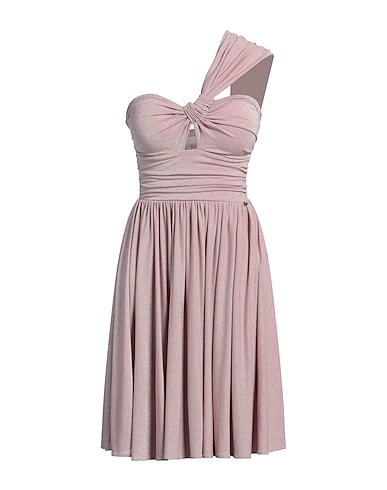 flared dress, knitted, metallic, lightweight knit, solid color, gathered, brand logo, sweetheart neckline, sleeveless, fully lined, zipper fastening, stretch, hand wash or dry clean, do not bleach, do not tumble dry