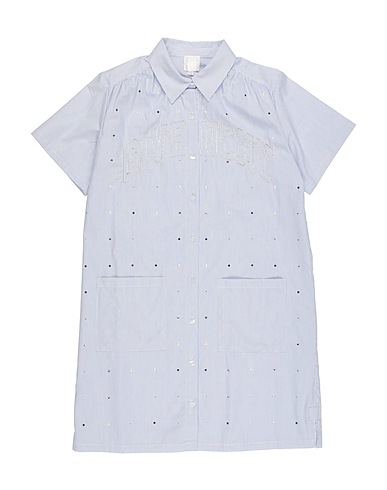 poplin, striped, embroidered logo, crystals, metallic trim, classic collar, short sleeves, button fastenings, multipockets, machine wash, do not bleach, do not tumble dry