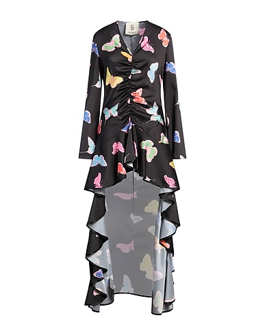 asymmetric dress, satin, multicolor, gathered, v-neck, long sleeves, bell sleeves, unlined, zipper fastening, asymmetric hem, dry clean, do not bleach, do not tumble dry, do not iron