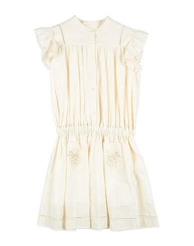 woven, solid color with appliqués, embroidered, crewneck, short sleeves, button fastenings, multipockets, machine wash or dry clean, do not bleach, do not tumble dry