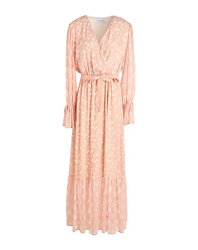 flared dress, crepe, polka-dot, belt, v-neck, long sleeves, fully lined, without pockets, machine wash or dry clean, do not bleach, do not tumble dry