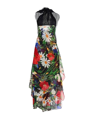 flared dress, crepe, metallic, floral-print, no appliqués, bow-tie neckline, sleeveless, dry clean, do not bleach, do not tumble dry