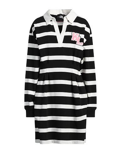 flared dress, jersey, striped, side seam stripes, embroidered, v-neck, long sleeves, unlined, machine wash, do not bleach, do not tumble dry, this brand runs small