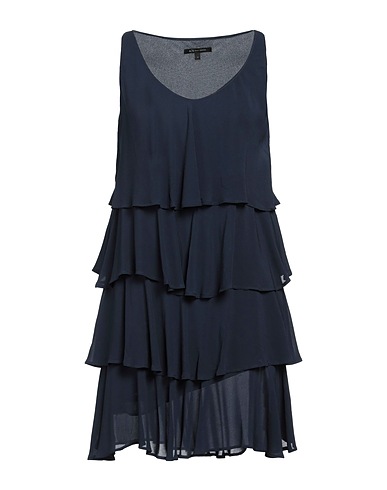flared dress, crepe, solid color, tiered, scoop