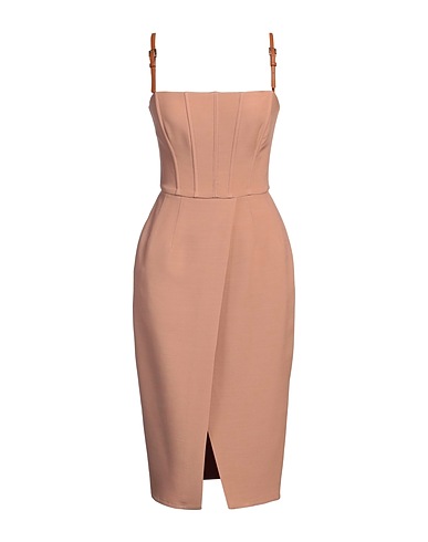 bodycon dress, crepe, coated fabric, solid color, no appliqués, square neckline, sleeveless, internal boning, zipper fastening, hook fastenings, without pockets, dry clean, do not bleach, do not tumble dry