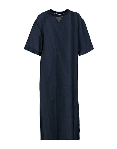 dress, voile, solid color with appliqués, embellished, knitted trims, crewneck, short sleeves, slip to line, side slit hemline, dry clean, do not bleach, do not tumble dry