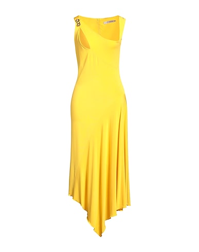 asymmetric dress, jersey, solid color with appliqués, embellished, scoop