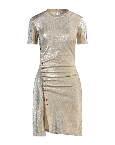 bodycon dress, jersey, metallic, solid color, no appliqués, crewneck, short sleeves, unlined, snap fastenings, stretch, dry clean, do not bleach, do not tumble dry