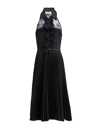 pleated dress, taffeta, lace, solid color, pleated, belt, ruffles, classic collar, sleeveless, button fastenings, hand wash, do not tumble dry