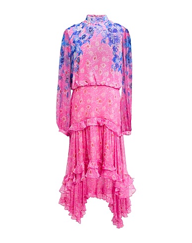 asymmetric dress, chiffon, floral-print, ruffles, tiered, crewneck, long sleeves, fully lined, zipper fastening, button fastenings, without pockets, dry clean, do not bleach, do not tumble dry, be the best-dressed bridesmaid or wedding guest with this designer piece, perfect for any ceremony