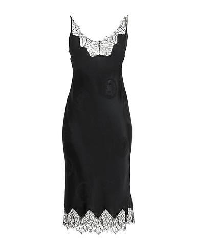 slip dress, satin, lace, solid color, brand logo, scoop