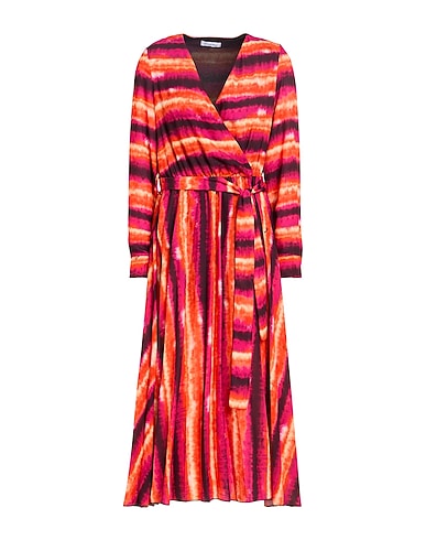 flared dress, crepe, striped, belt, brand logo, v-neck, long sleeves, fully lined, without pockets, machine wash or dry clean, do not bleach, do not tumble dry