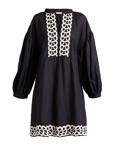 flared dress, linen, solid color with appliqués, embroidered, crewneck, long sleeves, unlined, multipockets, machine wash or dry clean, do not bleach, do not tumble dry, this brand runs large, planning a weekend getaway or beach vacation? this is the effortless summer style you need