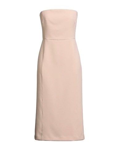 bodycon dress, crepe, stretchy fabric, solid color, no appliqués, strapless, sleeveless, unlined, without pockets, rear slit, hand wash or dry clean, do not bleach, do not tumble dry