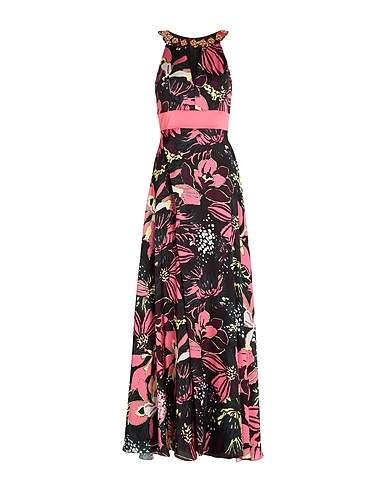 flared dress, satin, floral-print, beads, wrap-effect, cutout, crewneck, sleeveless, fully lined, zipper fastening, 1 button, hand wash or dry clean, do not bleach, do not tumble dry