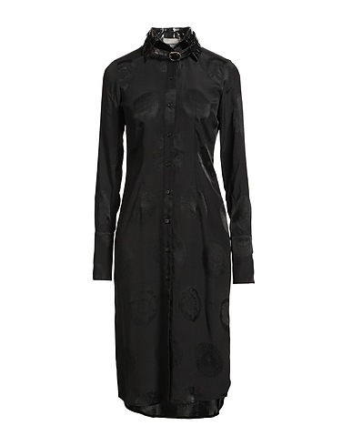 shirt dress, satin, solid color, synthetic trims, classic collar, long sleeves, unlined, button fastenings, machine wash or dry clean, do not bleach, tumble dry