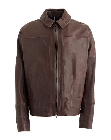 leather, brand logo, solid color, classic neckline, single-breasted , long sleeves, fully lined, multipockets, contains non-textile parts of animal origin, generic outerwear