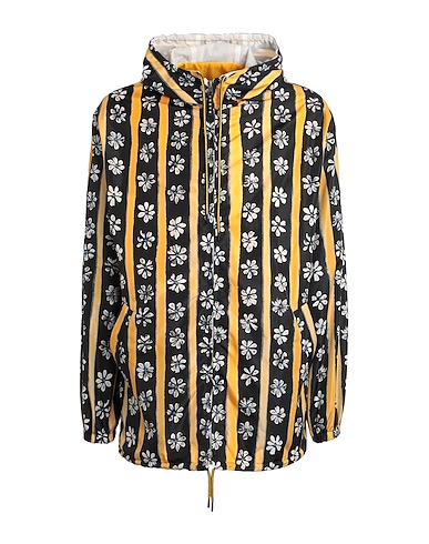 techno fabric, brand logo, floral design, stripes, hooded collar, single-breasted , long sleeves, fully lined, zipper closure, multipockets, double face, windbreaker model, large sized