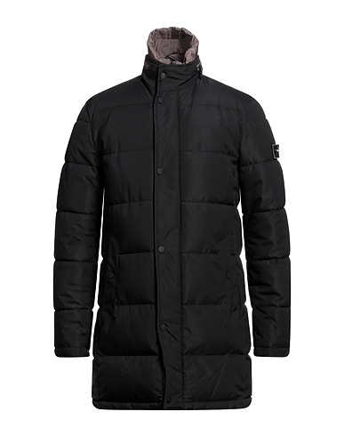 techno fabric, brand logo, solid color, hooded collar, single-breasted , long sleeves, internal padding, snap buttons fastening, zipper closure, multipockets, single-breasted jacket