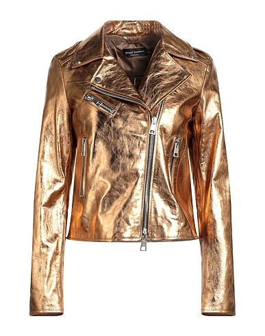 leather, laminated effect, no appliqués, solid color, lapel collar, single-breasted , long sleeves, zipped cuffs, fully lined, zipper closure, multipockets, pocket with zipper, contains non-textile parts of animal origin, biker style, small sized