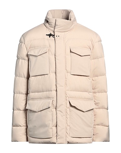 shell, quilted, no appliqués, solid color, hooded, single-breasted , long sleeves, duck down filling, zipper fastening, snap fastenings, multipockets, contains non-textile parts of animal origin, single-breasted jacket