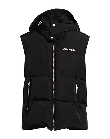 shell, brand logo, side seam stripes, solid color with appliqués, detachable hood, sleeveless, goose down interior, heavyweight padding, zipper fastening, zipped pockets, contains non-textile parts of animal origin, machine wash or dry clean, do not bleach, do not tumble dry