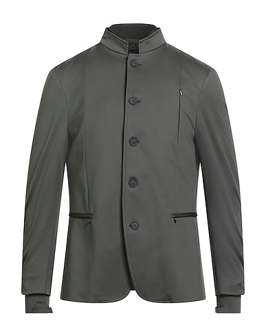 jacket, synthetic jersey, solid color, no appliqués, mandarin collar, single-breasted , long sleeves, fully lined, button fastenings, zipper fastening, multipockets, stretch, dry clean, do not bleach, do not tumble dry