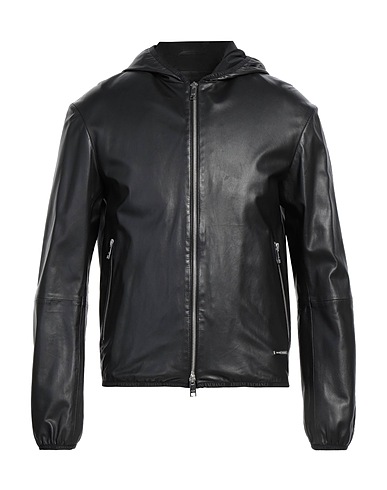 casual jacket, leather, solid color, brand logo, hooded, long sleeves, fully lined, zipper fastening, multipockets, elasticated hem, contains non-textile parts of animal origin, specialist clean or dry clean, do not bleach, do not tumble dry, do not iron