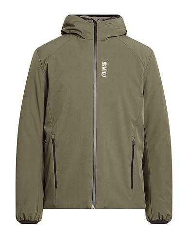 casual jacket, shell, stretchy fabric, brand logo, solid color, hooded, long sleeves, synthetic filling, lightweight padding, zipper fastening, zipped pockets, machine wash, do not bleach, do not tumble dry