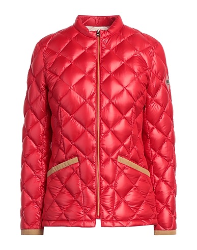 down jacket, shell, quilted, brand logo, solid color, crewneck, long sleeves, goose down interior, lightweight padding, zipper fastening, multipockets, contains non-textile parts of animal origin, machine wash or dry clean, do not bleach, do not tumble dry, this brand runs small