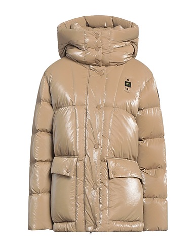 down jacket, shell, quilted, coated effect, brand logo, solid color, detachable hood, long sleeves, duck down filling, heavyweight padding, zipper fastening, flap pockets, drawstring hem, contains non-textile parts of animal origin, do not dry clean, do not bleach, do not tumble dry