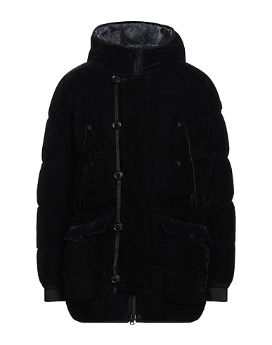 down coat, velvet, quilted, brand logo, solid color, hooded, long sleeves, duck down filling, heavyweight padding, button fastenings, zipper fastening, multipockets, internal pockets, contains non-textile parts of animal origin, machine wash, do not bleach, tumble dry