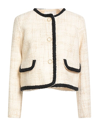 jacket, tweed, bouclé, solid color with appliqués, piped trims, button-embellished, crewneck, single-breasted , long sleeves, fully lined, snap fastenings, flap pockets, dry clean, do not bleach, do not tumble dry, power dressing meets elegance in this chic office outfit that will inspire confidence every day