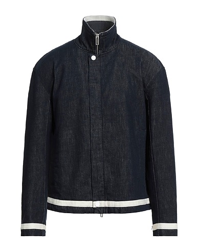 denim jacket, denim, embellished, embroidered logo, solid color with appliqués, dark wash, turtleneck, long sleeves, buttoned cuffs, unlined, snap fastenings, zipper fastening, slit pockets, machine wash, do not bleach, do not tumble dry