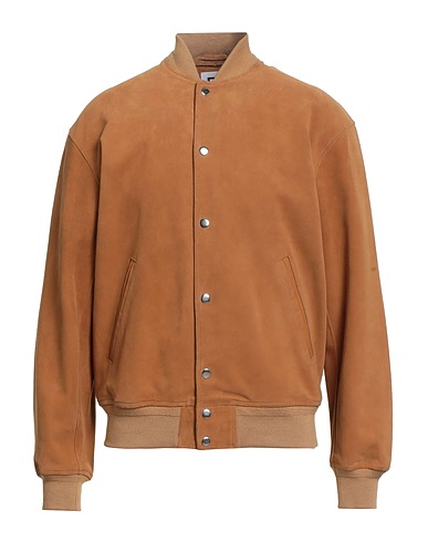 bomber jacket, suede, no appliqués, knitted trims, solid color, crewneck, long sleeves, unlined, snap fastenings, multipockets, contains non-textile parts of animal origin, do not dry clean, do not bleach, do not tumble dry, do not iron