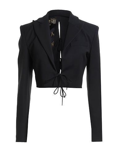 bolero jacket, crepe, stretchy fabric, darts, solid color, lapel collar, long sleeves, fully lined, tie fastening, dry clean, do not bleach, do not tumble dry