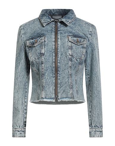 denim trucker jacket, denim, brand logo, solid color, medium wash, classic collar, long sleeves, buttoned cuffs, unlined, zipper fastening, two chest pockets, machine wash or dry clean, do not bleach, do not tumble dry
