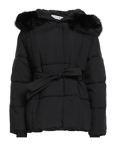 padded jacket, shell, detachable application, belt, plush fabric trims, solid color, hooded, long sleeves, elasticated cuffs, synthetic filling, heavyweight padding, zipper fastening, snap fastenings, zipped pockets, machine wash or dry clean, do not bleach, tumble dry