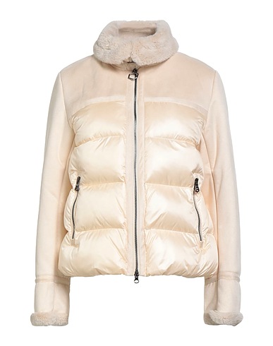 down jacket, shell, suede-effect fabric, plush fabric trims, solid color, classic collar, long sleeves, goose down interior, heavyweight padding, zipper fastening, zipped pockets, contains non-textile parts of animal origin, dry clean, do not bleach, do not tumble dry, do not iron