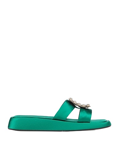 slide sandals, satin, solid color with appliqués, crystals, cutout, leather lining, square toe, wedge heel, covered wedge, rubber cleated sole, contains non-textile parts of animal origin