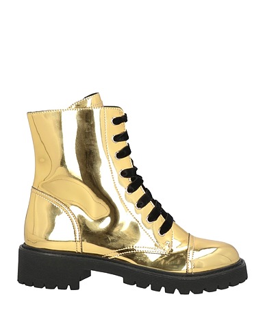 combat boots, synthetic material, metallic, solid color, brand logo, leather lining, zipper fastening, lace-up, round toe, square heel, lug sole, contains non-textile parts of animal origin