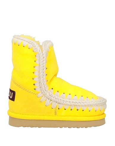 padded boots, suede, solid color with appliqués, brand logo, knitted trims, lined in shearling, round toe, flat, rubber cleated sole, contains non-textile parts of animal origin
