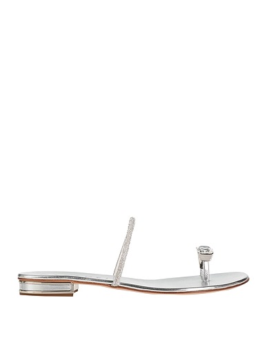 toe strap sandals, metallic, solid color with appliqués, crystals, leather lining, round toe, flat, leather sole, contains non-textile parts of animal origin
