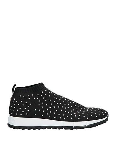 knitted, rhinestones, brand logo, two-tone, leather backing, round toeline, flat, rubber cleated sole, contains non-textile parts of animal origin, sock sneakers